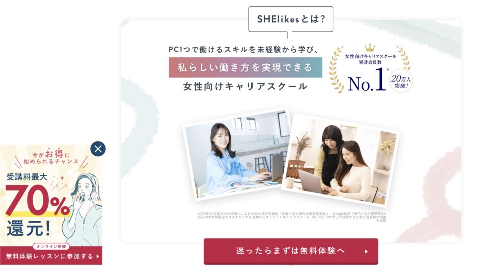 特に忙しい人ほど、学習ペースに融通の利く「SHElikes(シーライクス)」がおすすめ💡